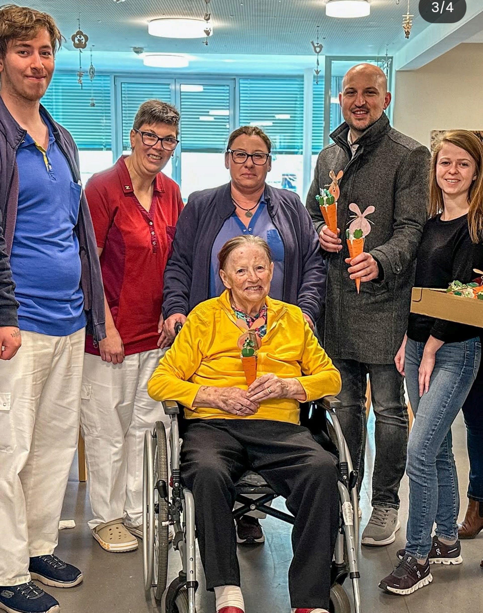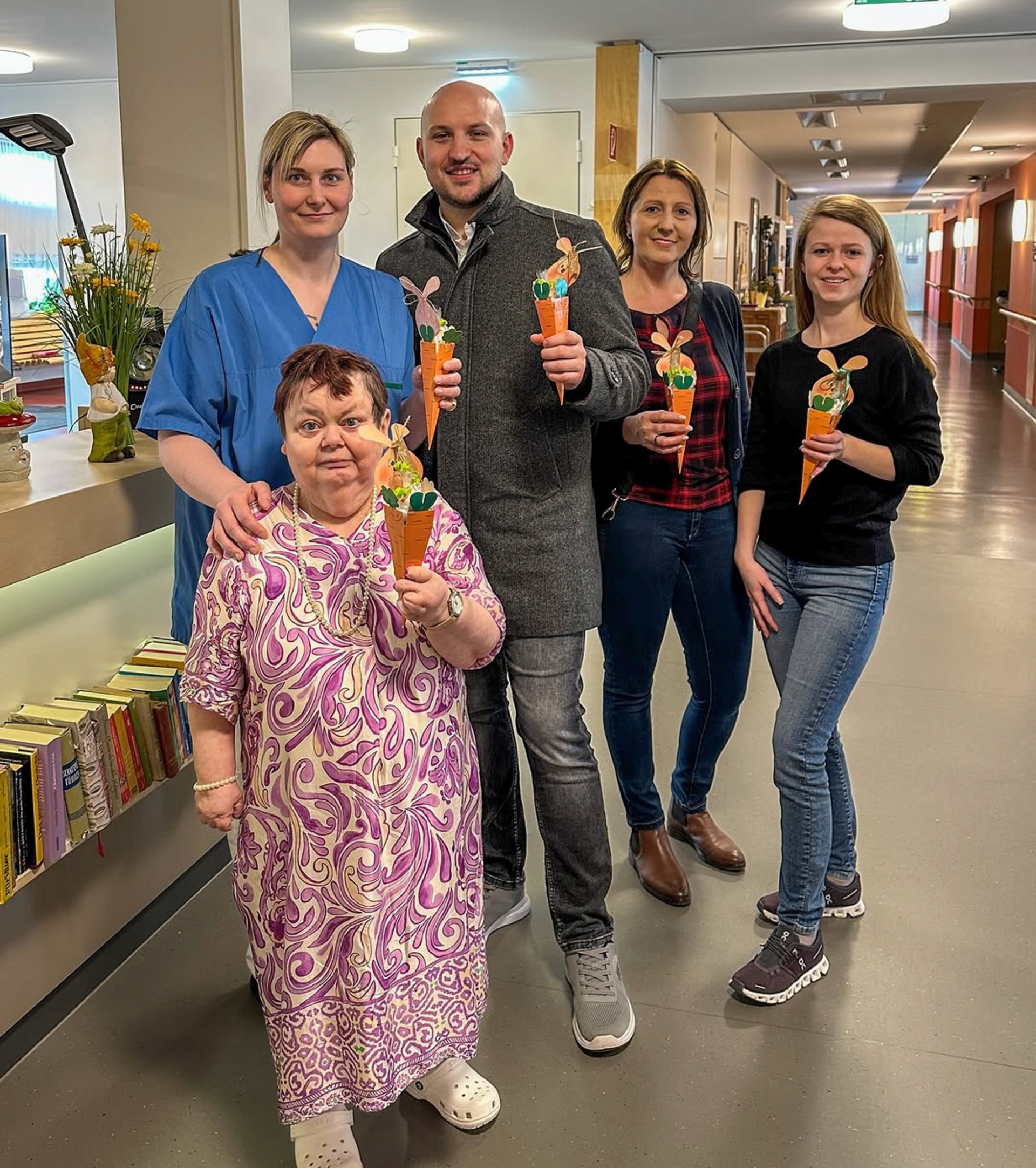 Bürgermeister Peter Reitzner überraschte gemeinsam mit Gemeinderätin Johanna Berger-Wesselak, Gemeinderätin Elisabeth Höhenberger und Stadträtin Katja Peham unsere BewohnerInnen und MitarbeiterInnen mit einer Osterüberraschung. Die mit Süßigkeiten gefüllten Karotten – liebevoll gebastelt von Veronika Sassmann – zauberte allen ein Lächeln ins Gesicht.